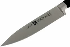 Le Bob Kramer by Zwilling Euro Stainless santoku 18 cm impressione par le magnifique motif de sa lame. Ce couteau de cuisine asiatique est un peu plus léger et compact qu’un couteau de cuisine classique. Vous pouvez facilement couper vos viandes, poissons, légumes et fruits mais aussi broyer et peller. Vous pouvez tout faire avec un Santoku !