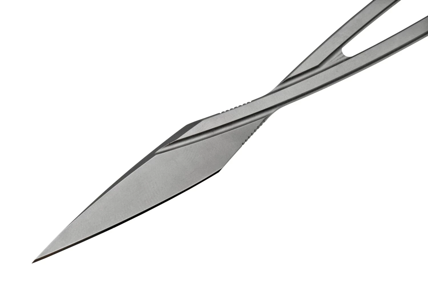 Le Civivi D-Art argentĂ©. Est-ce un bijou ? Est-ce un outil ? Les deux ! Le nom D-Art est un jeu de mots avec l’expression « objet d’art » et « dart » qui signifie flĂ©chette en anglais. Un objet fin et pointu. Ce couteau de cou moderne a Ă©tĂ© conçu par Ostap Hel. Un designer de couteaux polonais rĂ©putĂ© pour ces designs associant concepts traditionnels et formes modernes.