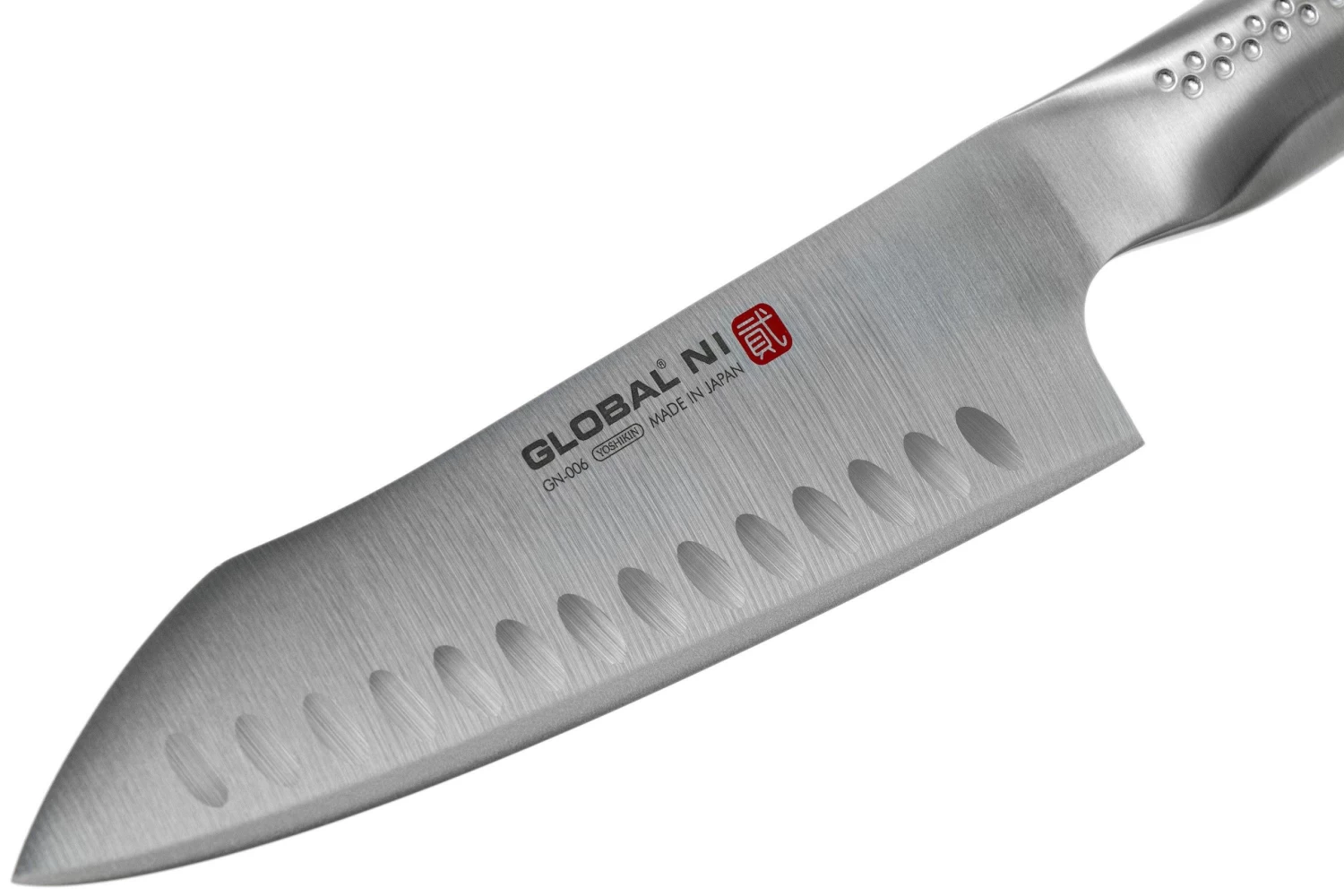 Le santoku Global NI GN-006 avec alvéoles est le couteau à légumes parfait. La lame ronde est parfaite pour un mouvement fluide et les alvéoles dans la lame préviennent les aliments de coller.