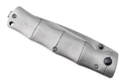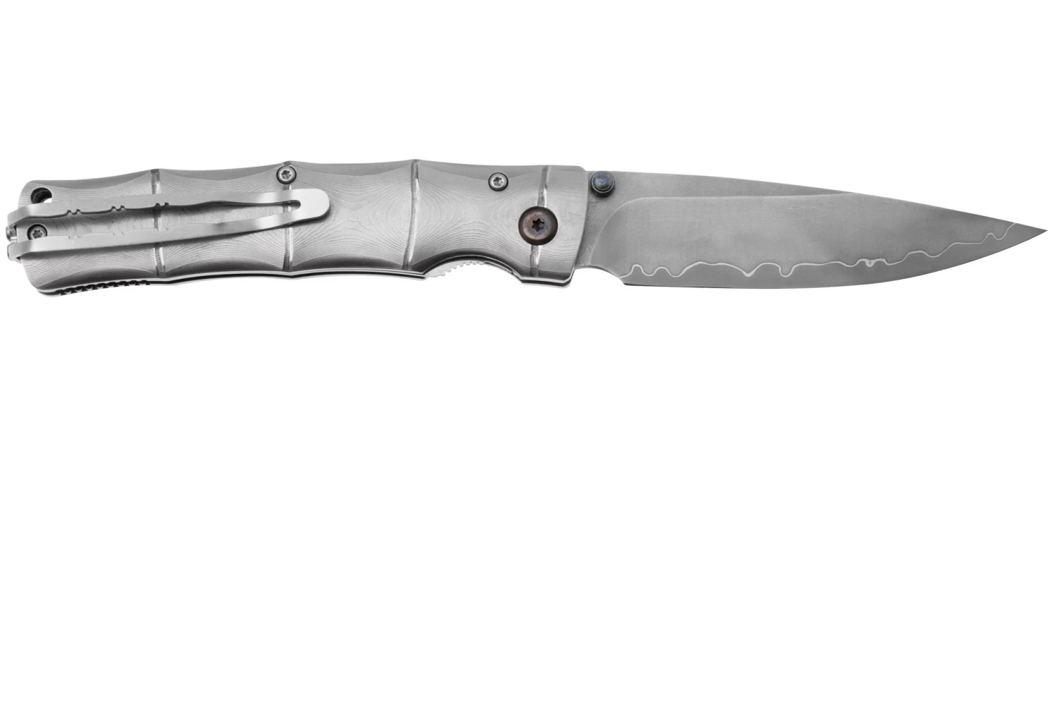 Le Mcusta MC-0202G Shinra Maxima Takeri est un grand couteau de poche très Ă©lĂ©gant. Parfait pour ceux qui ont une prĂ©fĂ©rence pour les grands couteaux de gentleman. Le manche en acier damassĂ© est incroyable. Mcusta a dotĂ© le manche d’une texture bambou. On a donc la sensation d’avoir un manche fabriquĂ© Ă partir d’un vrai morceau de bambou. Non seulement c’est magnifique mais cela ajoute Ă©galement une bonne adhĂ©rence.